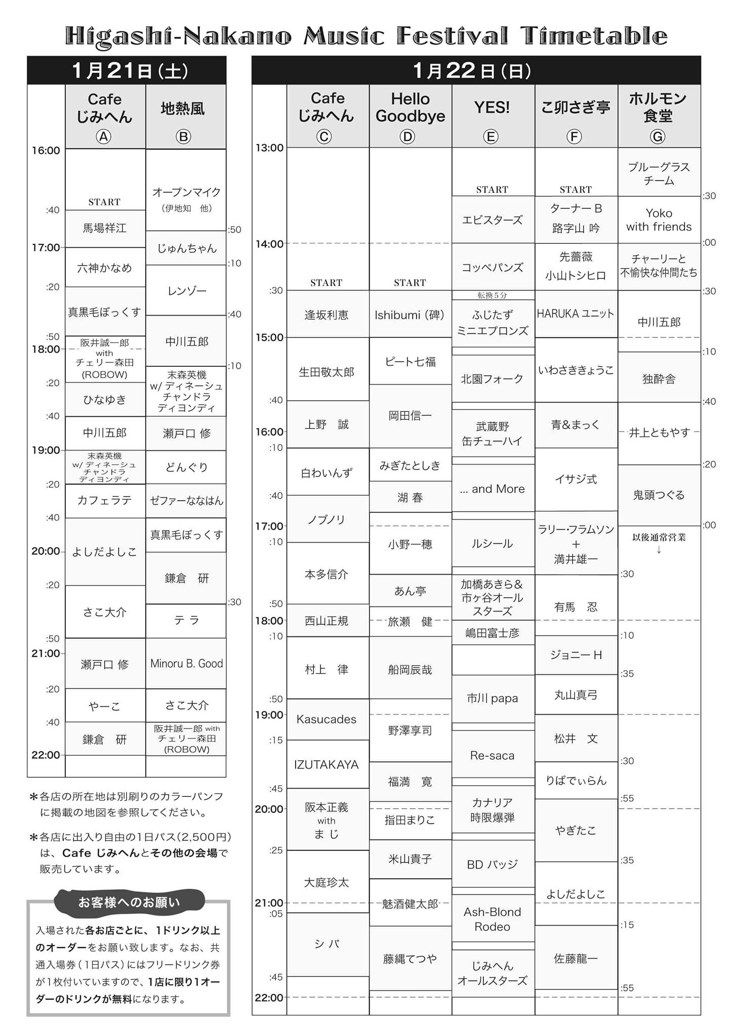 1月21日(土) 前夜祭 17時~