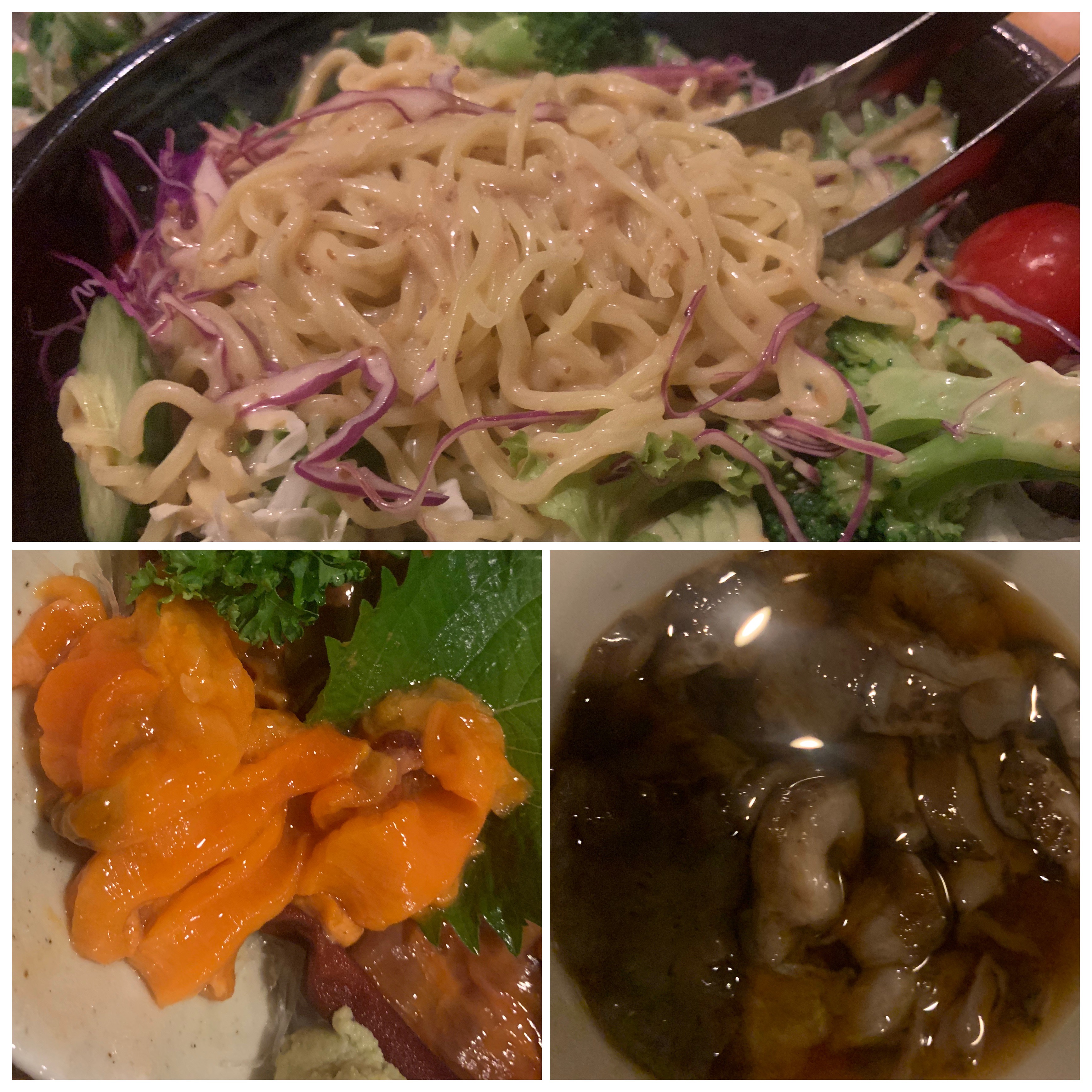 ほや や ナマコ酢、北海道名物サラダラーメンをいただき