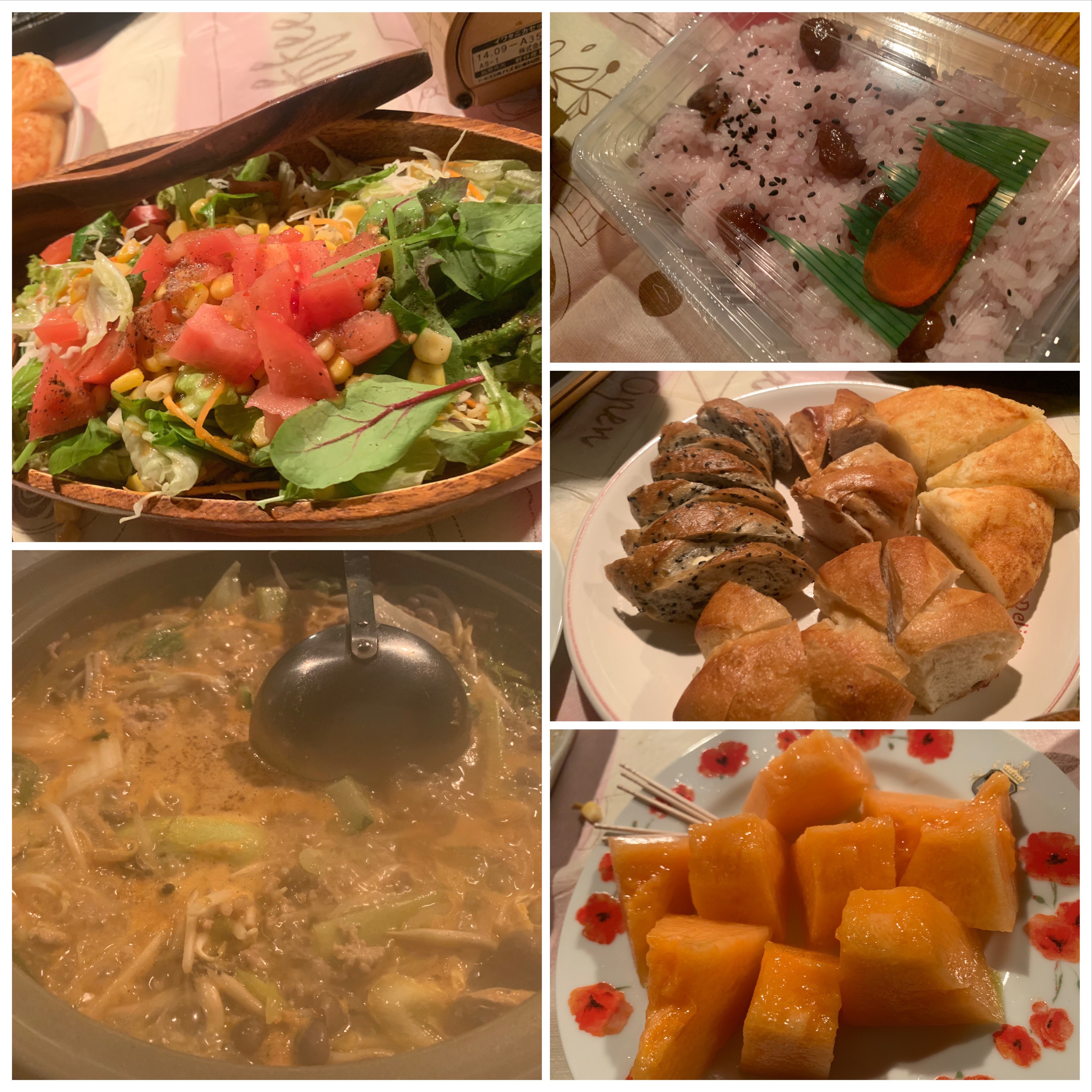 坦々鍋を中心に焼き鳥、サラダ。
