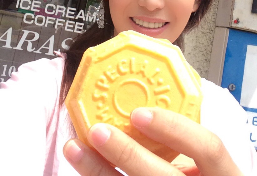 最中アイスを食べ