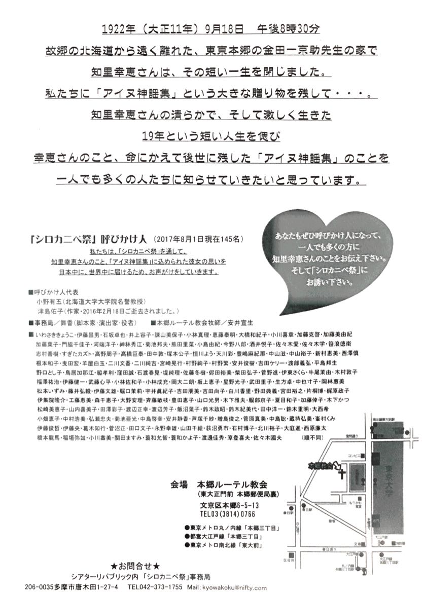 知里幸恵さん没後95年 召天記念会